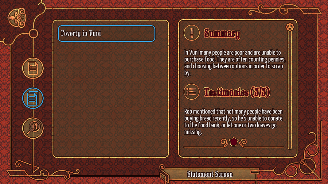 We’ve also been doing polish passes and slowly improving the quality of everything. For example, here is what the Statement Screen looked like: